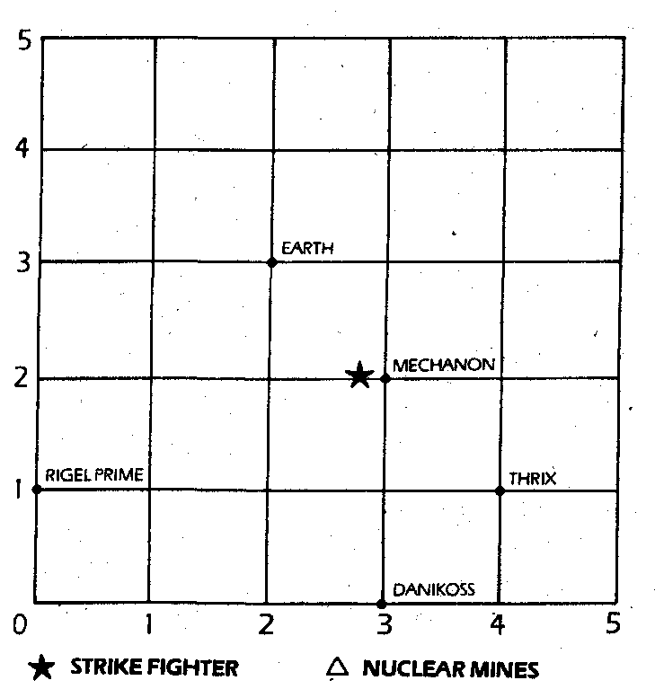 Nothing happens. CAIN tells you that the grid exists in only two dimensions, you have tried to move in a third dimension. The radiation level is critical. Which co-ordinates will you try next?