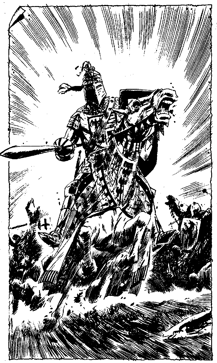The din of metal striking metal rings all about you as the French knights ride amongst the English. All is confusion as the English seek to drag the French from their horses while defending, shields raised, against the blows of their swords. You move back, but the Black Prince is hard pressed and whilst you are deciding whether to aid him a French knight in a great visored helmet bears down on you with a lance. Will you:
