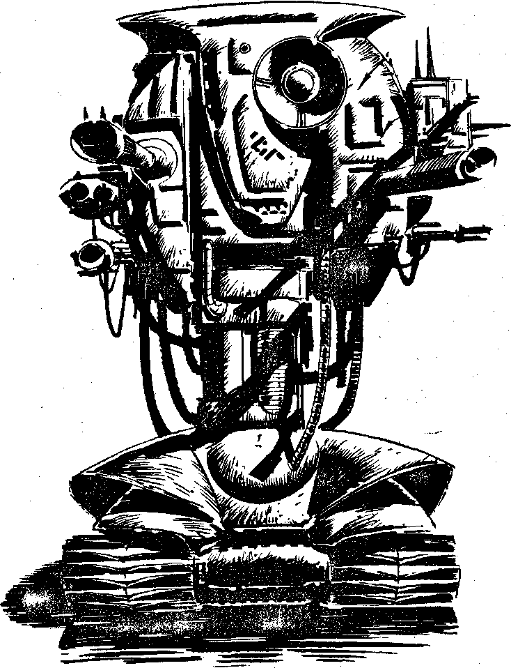 Your training has paid off. Faster even than the electronic circuitry of the wardroid, the lancing bolt of white hot energy hits its power plant and your helmet faceplate flash defence cuts in, darkening automatically as the bright explosion lights the yellow atmosphere, hurling debris everywhere. You have destroyed the wardroid that guards the loading bay but other robots may be on their way to intercept you. A rack of Polybdenum rods stands in the bay at the back of the cavernous armadillo-like mining droid. You seize your chance to destroy it. Turn to 141.